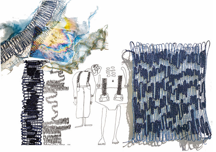 ‘Cataclysm’ looked at the environmental disaster after biomedical waste, and finding beauty from it. The collection has re-invent the craft process in weaving and crochet alongside the exploration for knit. The research of chemical waste was mainly focus on the inappropriate medical disposal onto the ocean. Visual textile inspiration was drawn from the ocean surface, resulted in medical dissolving and chemical spill. The collection has developed a range of textiles with weaving and crochet craft skills, combining with knit to demonstrate artisanal craft through clothing.